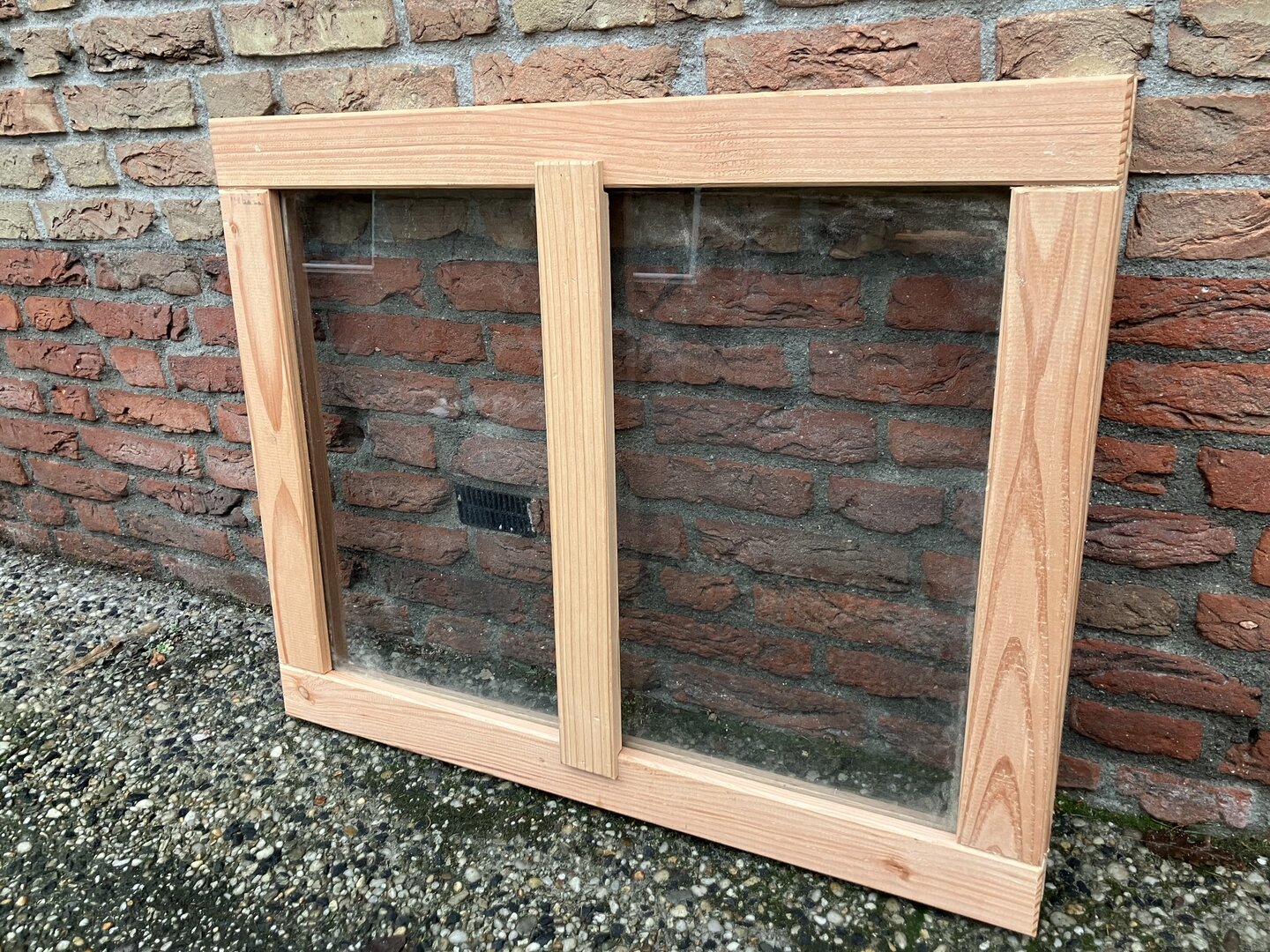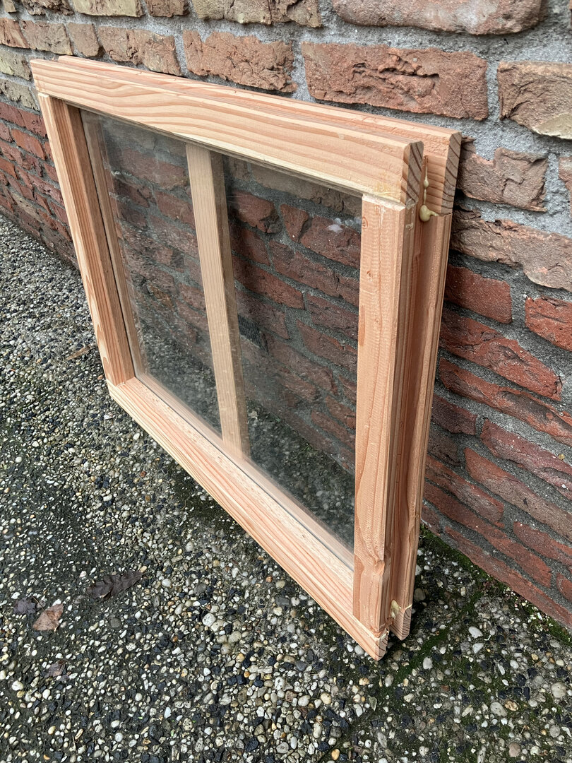 De set wordt compleet geleverd inclusief het bijbehorende raamkozijn, waardoor het direct klaar is voor montage. Voor een esthetisch perfecte integratie in uw wand is een optioneel stelkozijn tegen meerprijs verkrijgbaar, wat zorgt voor een mooie en strakke aansluiting. Met dit solide douglashouten raam creëert u op een eenvoudige manier extra lichtinval en een authentieke sfeer in uw buitenverblijf of schuur.