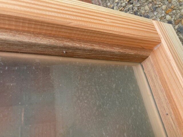 Douglas vast raam met melkglas, 80×40 cm, onbehandeld.