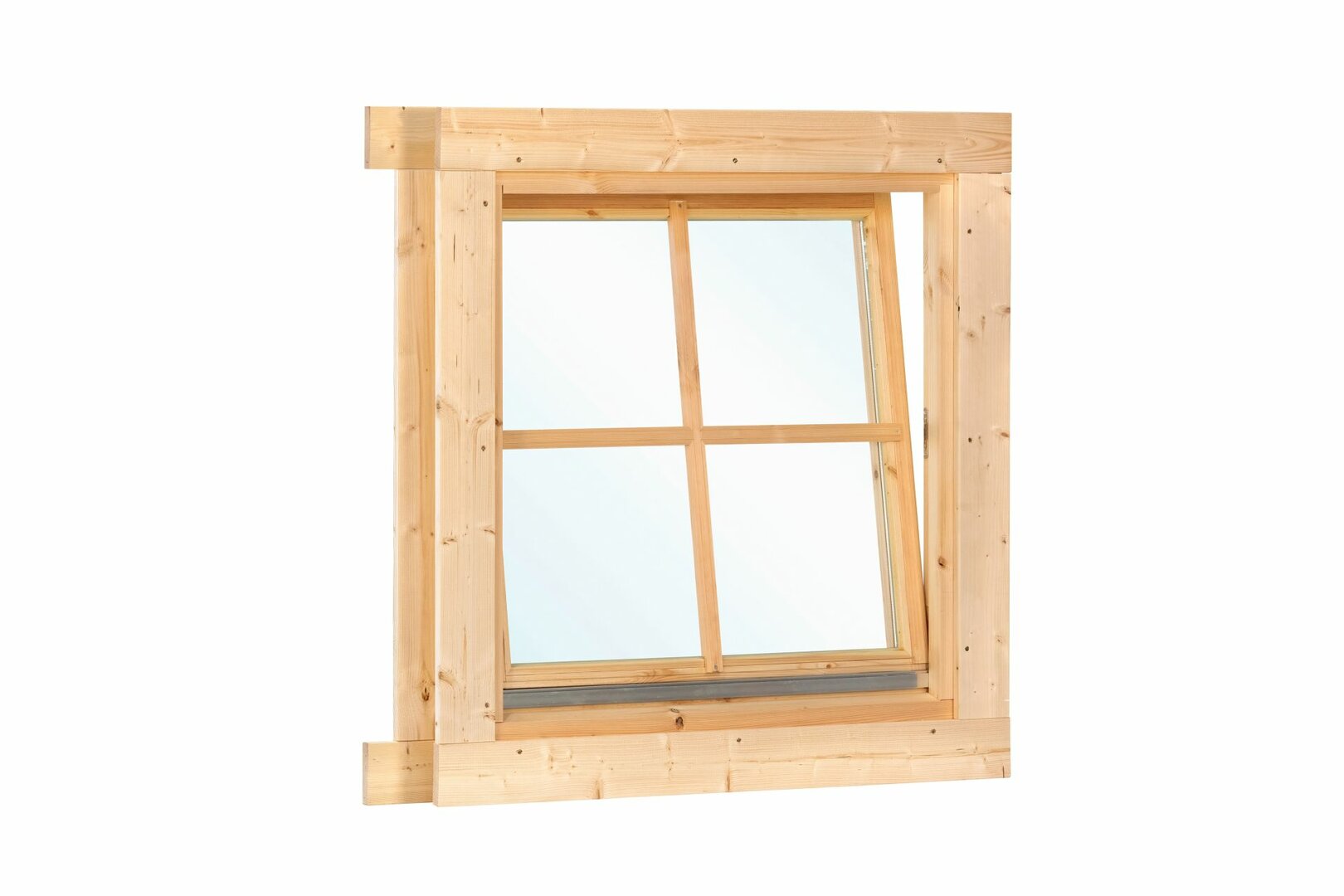 Het pakket wordt zeer compleet geleverd, inclusief het bijbehorende vurenhouten raamkozijn en hoogwaardig rvs raambeslag voor een soepele bediening en duurzame kwaliteit. Met een gewicht van 13 kg is dit raam handzaam en direct klaar voor een vlotte montage in uw tuinhuis of bijgebouw.